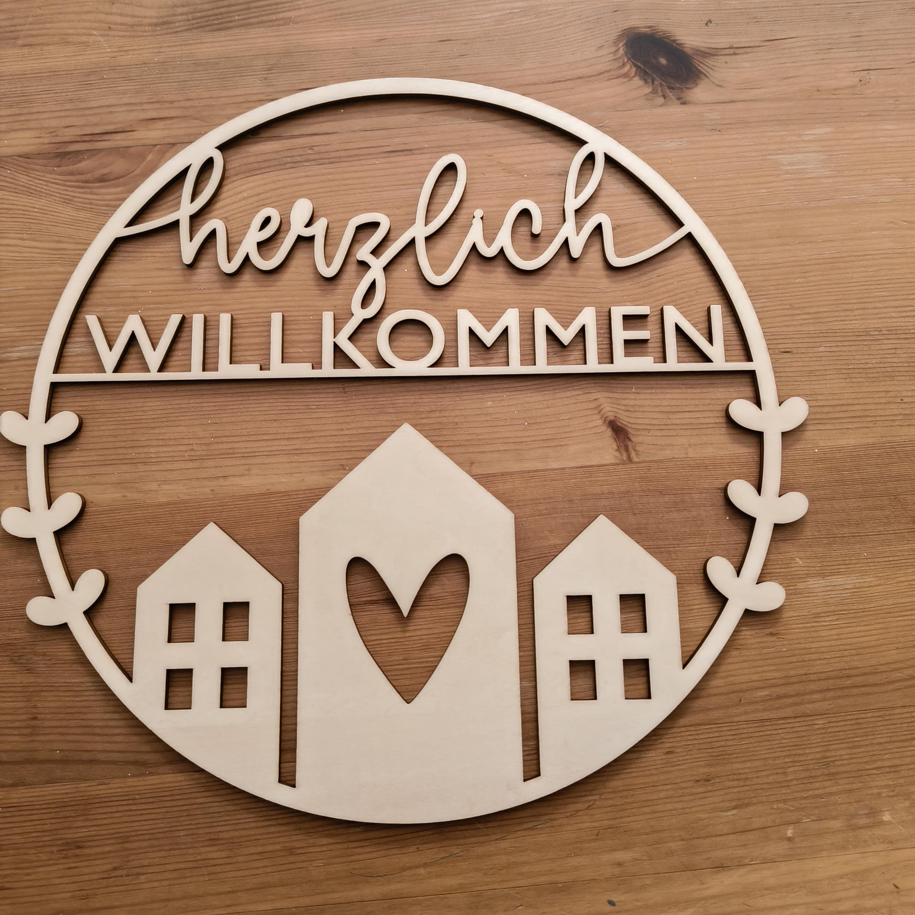 Door hanger / door sign "Welcome" - 25 cm diameter, customizable